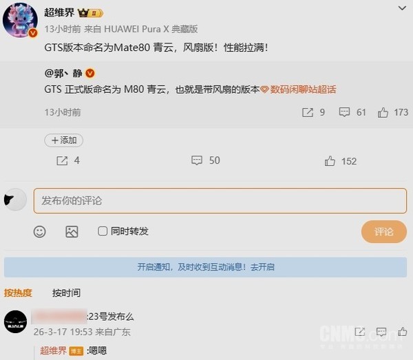 【CNMO科技讯息】近日,罕有码博主称,华为此前据说中的“GTS”机型将被定名为“Mate 80青云”,将自带散热电扇,“性能拉满”。该博主还证据,新机将在3月23日的发布会上亮相。 华为Mate 80 GTS猜思图(右) 从多方爆料信息看,这款定位高性能的机型或将成为华为Mate家眷中的“性能担当”。据华为末端官方讯息,华为春季全场景新品发布会已定档3月23日14:30。除已官宣的畅享90系列外,业界大王人预期Mate系列新品有望同台亮相。 据CNMO了解,华为Mate 80青云版的中枢亮点在于主动散热系统的引入。据称,该机可能搭载转速高达12000转/分钟的小型涡轮电扇,并重叠微泵液冷与超大VC液冷构成复合散热决策。这种在手机上陌生的主动式散热野心,大致处理高性能芯片在高负载场景下的降频痛点。爆料走漏,开云体育官网该决策表面上可在30秒内将芯片温度从55℃降至38℃。 中枢确立方面,该机瞻望搭载麒麟9030 Pro或增强版芯片,最高可选24GB+2TB内存组合。屏幕或接受7.2英寸双层OLED玲珑屏,峰值亮度达8000尼特。续航上,或将内置6750mAh阁下容量电板,赈济100W有线快充。 值得防护的是,华为Mate 80系列于2025年11月发布,若青云版最终落地,其居品定位将变成各异化,主打极致性能开释,指标用户或为硬核玩家群体。 死心发稿开云(中国),华为官方尚未对Mate 80青云版的存在作出回话。3月23日的发布会将揭晓这款“性能拉满”的新机究竟能否按期亮相。 小九体育在线直播官网 |