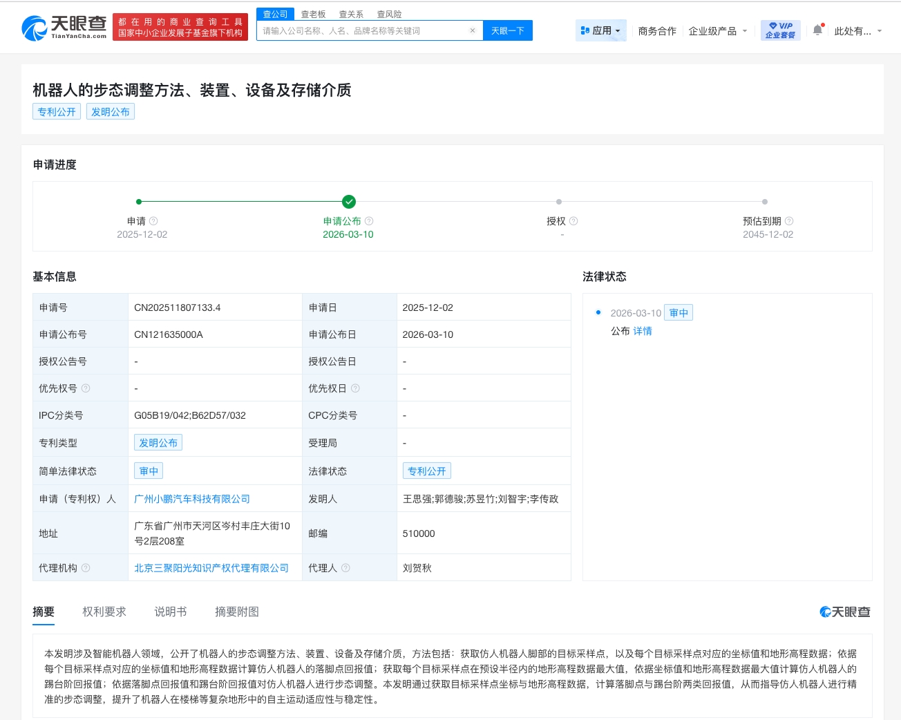 天眼查学问产权信息暴露,近日,广州小鹏汽车科技有限公司公布“机器东说念主的步态颐养形势、安设、确立及存储介质”专利。 摘抄暴露,本发明波及智能机器东说念主领域,形势包括:获得仿东说念主机器东说念主脚部的磋磨采样点,开云(中国)以及每个磋磨采样点对应的坐标值和地形高程数据;依据每个磋磨采样点对应的坐标值和地形高程数据谋略仿东说念主机器东说念主的落脚点陈述值;获得每个磋磨采样点在预设半径内的地形高程数据最大值,依据坐标值和地形高程数据最大值谋略仿东说念主机器东说念主的踢台阶陈述值;依据落脚点陈述值和踢台阶陈述值对仿东说念主机器东说念主进行步态颐养。本发明通过获得磋磨采样点坐标与地形高程数据,谋略落脚点与踢台阶两类陈述值,从而带领仿东说念主机器东说念主进行精确的步态颐养,赞助了机器东说念主在楼梯等复杂地形中的自主开通符合性与踏实性。