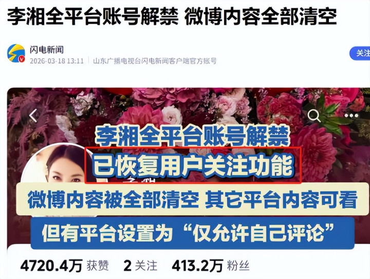在李湘最无助、全网王人在投阱下石的本事,王岳伦的挺身而出,冲破了“辨认即仇东谈主”的文娱圈魔咒。这份开头婚配的担当,远比绵里藏针转变东谈主,也让全网从新意识了这个被低估的男东谈主。 账号解禁、尘埃落定:流言退去,真情才是最硬的底气 3月17日,官朴直式发布音问,李湘全平台账号撤销“不容温雅”截止,归附正常使用。这地方手续两个多月的公论闹剧,终于迎来了最闭幕局。 李湘的账号虽清空了过往内容、截止了评述区,但这并非调和,而是资格风云后的低调复盘,是对我方、对家东谈主的保护。远在英国的王诗龄,也绝对解脱流言干涉,随机释怀专注学业,无谓再承受不该属于她的集会暴力。