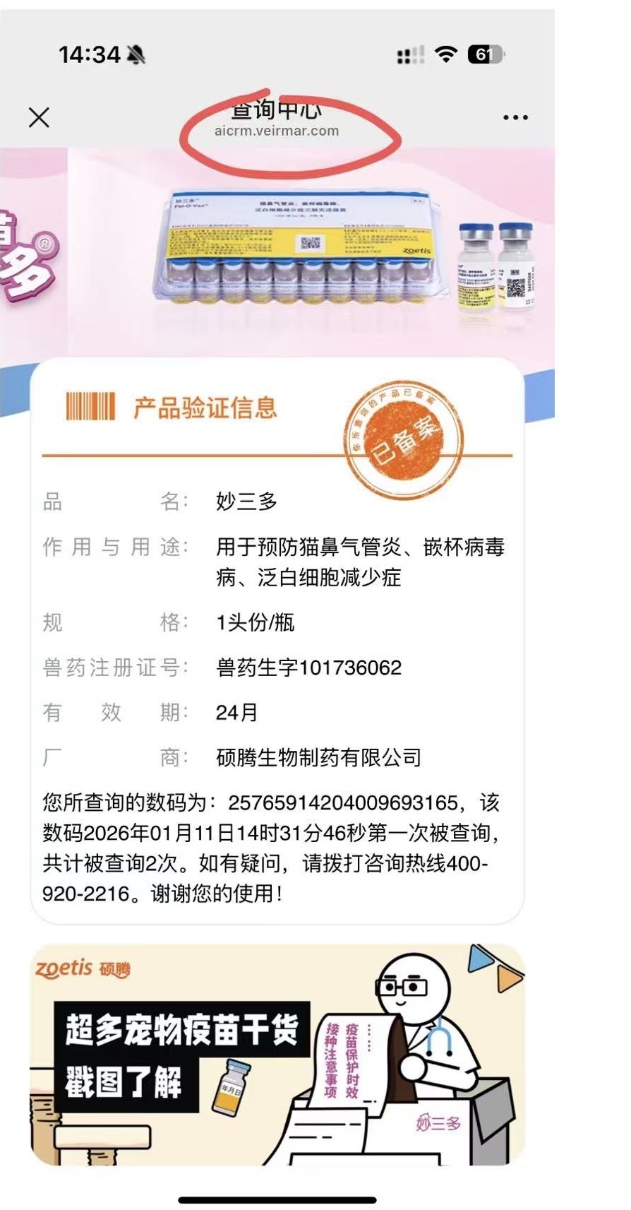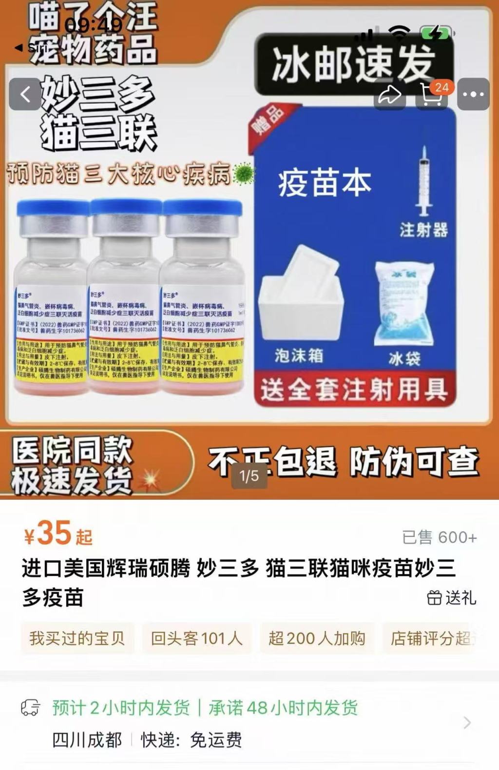 宠物主本念念省钱网购疫苗,却可能让爱宠堕入健康风险——部分电商平台上售卖的猫咪疫苗,正成为消费者投诉的重灾地。 《2026年中国宠物行业白皮书(消费讲述)》自大,2025年城镇犬猫数目为1.26亿只,其中宠物猫的数目为7289万只。 猫咪疫苗看成寥落商品的需求量数不胜数。“妙三多”(猫鼻气管炎、嵌杯病毒病、泛白细胞减少症三联灭活疫苗)看成国内最早获批的猫用灭活三联疫苗,永恒以来占据市集主导地位,是浩繁养猫家庭的“刚需”居品。 倾盆新闻走访发现,包括这款疫苗在内的猫咪疫苗消费者投诉频发:扫码自大“数据被冻结”、店铺无兽药蓄意天禀、宠物接种后体格严重不适、未在程序温度下存储等。 3月5日,“妙三多”品牌方——硕腾(上海)企业料理有限公司(下称“硕腾公司”)接受倾盆新闻采访时暗意:从未授权任何电商平台或网店销售其疫苗居品。任何非授权渠说念(包括主流电商平台)所售居品,其来源与全程冷链(2–8℃)合规性难以保险,存在质料与用苗安全隐患。 硕腾公司提醒,疫苗接种自己是一项严谨的临床医疗行动,宠物主东说念主时时不具备范例打针与济急处理的专科能力,提出消费者选拔正规宠物病院进行接种并扫码验真。 集聚平台中销售的“妙三多”疫苗,宣称来自“入口”“好意思国辉瑞”等信息。 投诉频现:打针后严重不适、扫码尽头 给宠物猫打疫苗,可匡助猫咪着重猫瘟、猫杯状病毒、猫鼻支等三种疾病。其中,猫瘟典型症状是吐逆、泻肚、体温升高、食欲下落等,致死率可超过50%,是三种疾病中致死率最高的。 在黑猫投诉平台上,对于淘宝、京东、拼多多等电商平台售卖“妙三多”疫苗的投诉案例不在少数,消费者反应的问题蚁集在赝品质疑、店铺无天禀、使用疑似假冒疫苗后出现不适、平台处理不力等方面。 消费者星子(假名)向倾盆新闻反应,2025年9月20日,他在淘宝平台上“保家仙宠物健康”网店阔绰39元购买了一支“妙三多”疫苗。给猫咪打针后,他用紫外线灯映照疫苗防伪美艳,随机发现疫苗标签无防伪反应,查询瓶身上二维码却自大数码信息失实,而在其他店铺购买的疫苗均简单。 发现问题后,星子第一时候将疫苗批号提供给硕腾官方客服。星子提供给倾盆新闻的灌音自大,硕腾客服阐述疫苗为赝品。随后,星子筹商店铺客服进行投诉,卖家开头不承认疫苗为赝品,后虽承认货物有问题,称是上游批发商问题或厂家升级系统导致的。 星子投诉后,经过平台与该店铺永恒交涉,卖家最终赐与退款。倾盆新闻审视到,面前该店铺仍是下架悉数商品并关闭。 另别称消费者吴娟(假名)则向倾盆新闻反应称,2025年12月26日,她在拼多多平台上的“刘医师兽药”网店阔绰61.18元购买两支“妙三多”疫苗。首单于2025年12月31日投递,但扫码后发现其中一支早在12月19日已被查询,遂立即肯求换货。换货的疫苗于1月10日收到后,她按简单经过为宠物完成接种,至2月7日两针一起打针完毕。 但是就在当晚,吴娟通过集聚渠说念学习武断学问并多方比对后,惊觉所购疫苗疑似赝品:扫描包装二维码跳转的网址并非官方域名,真网址含“veima”,假网址多出两个“r”且无法加载,官方平台亦无法识别该码。硕腾公司官方客服随后在电话中阐述该居品确系假冒。此外,什物外不雅也存在多处流毒——标签多处细节与正品不符;瓶底喷码门径失实。 怀疑买到假疫苗,吴娟更担忧宠物的健康安全,但是她尝试与卖家筹商却一直未获回应。她还发现商家在往还完成后不久便下架了悉数商品流畅。3月6日,倾盆新闻点开该店铺流畅,发现已无商品。通过工商登记尝试筹商该商家,也未获回应。 此外,倾盆新闻还收到多名消费者反应,称打针疑似假冒疫苗后,猫咪存在严重不良反应等情况。 黄鹏辉在福建福州一家宠物病院作念了8年医师。在他看来,假冒疫苗的危害主要取决于它的“假”到了什么进度。如若是用生理盐水等冒充疫苗,属于全王人无效型,猫咪并未产生抗体,仍处于猫瘟、疱疹病毒等致命病毒的胁迫之下。一朝构兵病毒,极易感染。如若是掺杂了不解要素以致无益物资,导致猫咪在打针后出现严重的过敏反应,获胜伤害猫咪体格。 从医过程中,他发现更多的情况是输送或存储不达标,导致疫苗效率不及的问题,“主东说念主误觉得猫咪有了保护,反而会削弱警惕,增多猫咪的露出风险。” 收到网购的“妙三多”疫苗,其中冰袋已化。 网购实测:疫苗来源成谜、冷链难保证 在各大电商平台,不错检索到大批“妙三多”的居品。 在淘宝平台检索“妙三多疫苗”,销量前几名的店铺超十万东说念主付款。在京东平台检索,则自大有超过700件商品,有的店铺月销超过十万。 2026年3月初,倾盆新闻从淘宝、京东、拼多多平台上的网店永别下单了“妙三多”疫苗居品。三家平台上所售的居品外不雅一致:均为蓝色瓶盖的密封塑料瓶,瓶身印有硕腾商标及华文“妙三多”美艳,并注明“仅在兽医指点下使用”。 淘宝订单(商家“喵了个汪宠物药品”)使用中通冷链输送,泡沫纸箱内有打针器,另附有生物冰袋与宠物健康免疫证,疫苗瓶内液体呈粉红色。 记者收到包裹时,冰袋已融解。泡沫纸箱所存的“常见问题”小卡片中称,网购冰袋化掉属于简单,“疫苗最好保存温度是2到8度,但不是超过这个温度坐窝就失效,2-8度的低温是为了保证2年的灵验期”“即使冰袋化掉(
